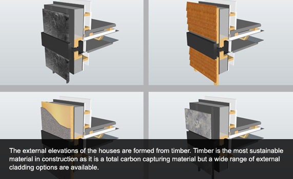 “The house will be delivered to a completely finished site with all hard landscaping in place and bolted together on to prefixed and levelled anchor bolts. The house will be weathertight within 1 week and fitted with fixed furnishings (kitchen and bathrooms) and commissioned within a further 2 weeks.”
