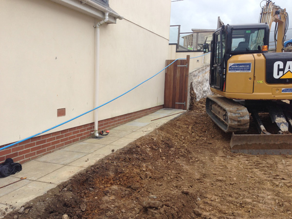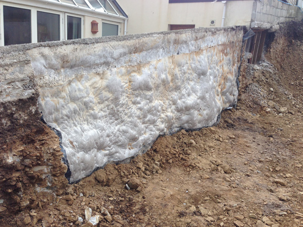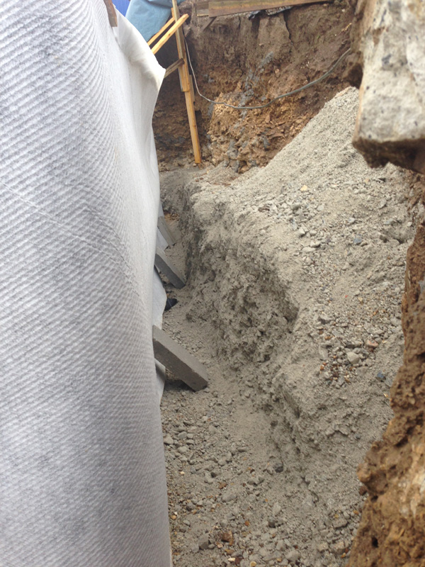 At least it was spotted. The black RIW double drain (black bumpy sheet with front white anti silt up sheet) that was wrapped around the garage wall was part buried before it was noticed that it was the wrong way around. It needed to be black thick plastic side to the garage wall.