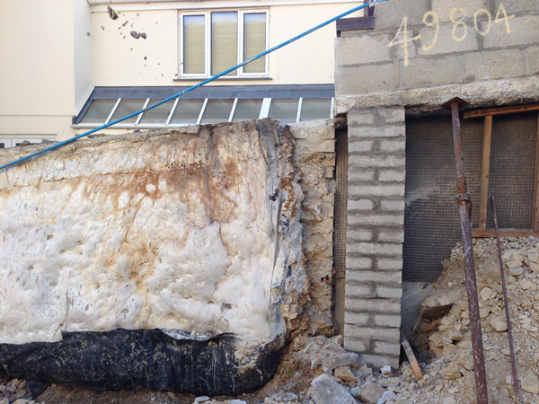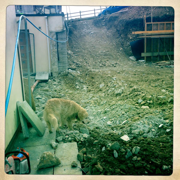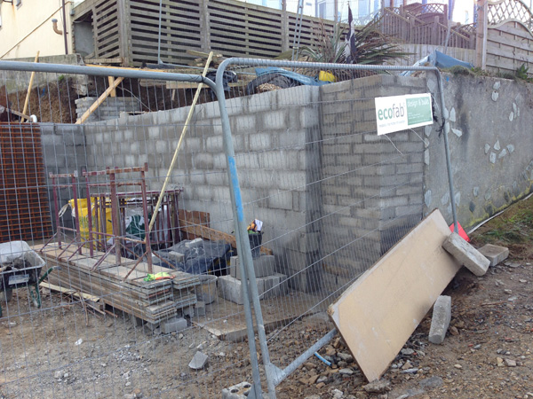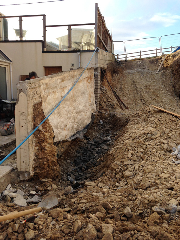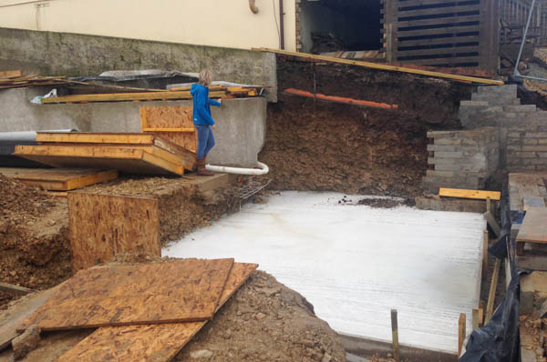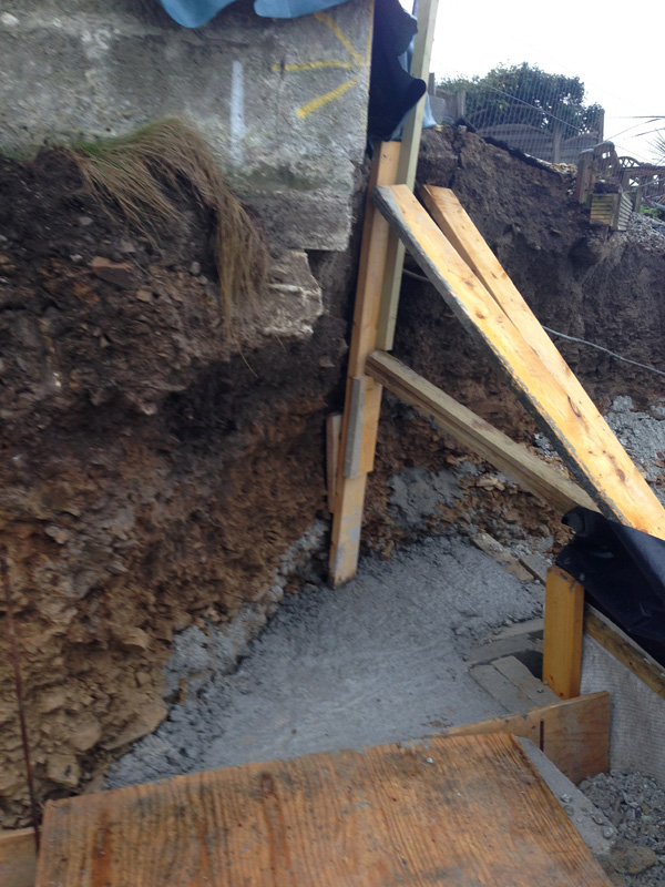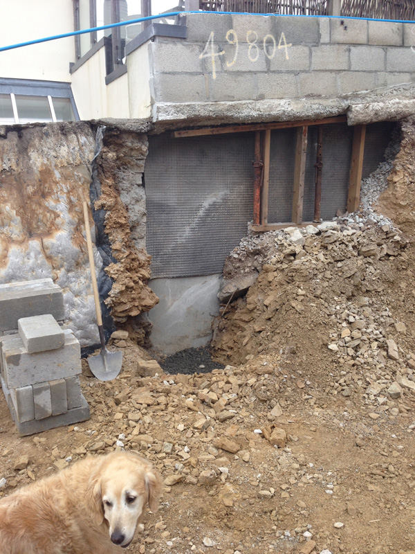 They have also started building a small retaining wall, backfilled with concrete to better support the ground under Kiephuis balcony. Their property structures are going to end up better supported than they were.