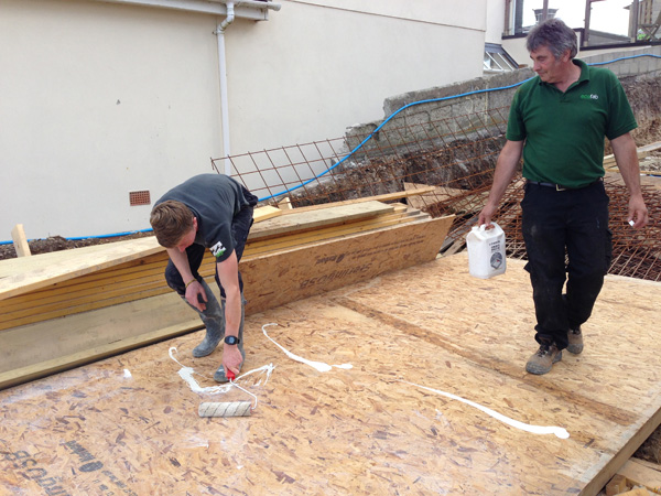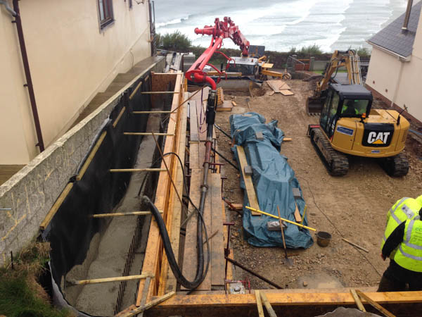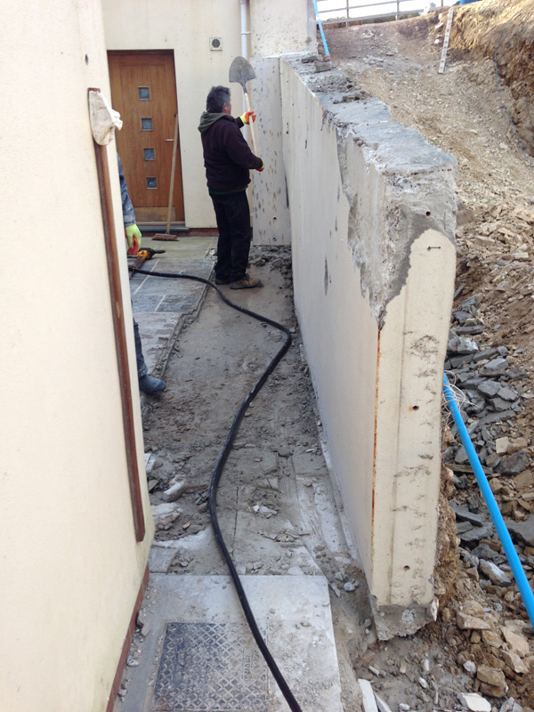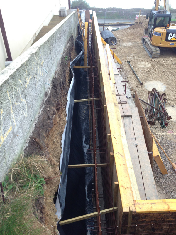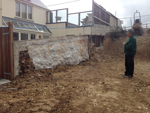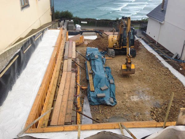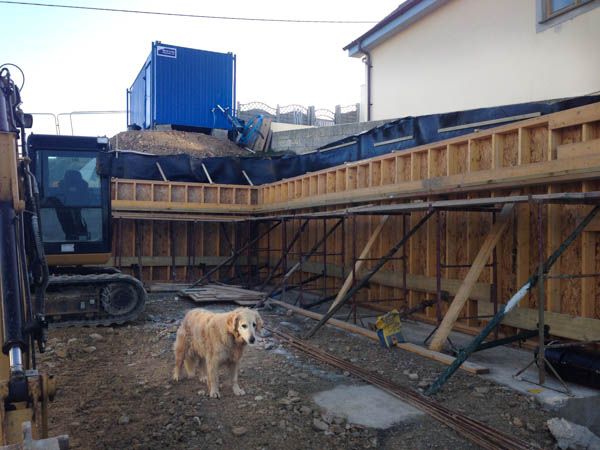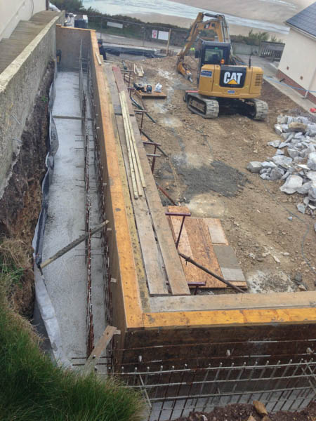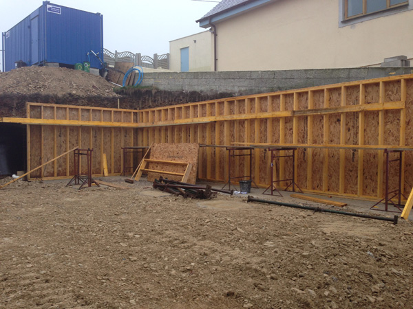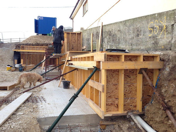 The main house retaining wall shuttering is coated to help it not stick to the cement before it’s put in place.