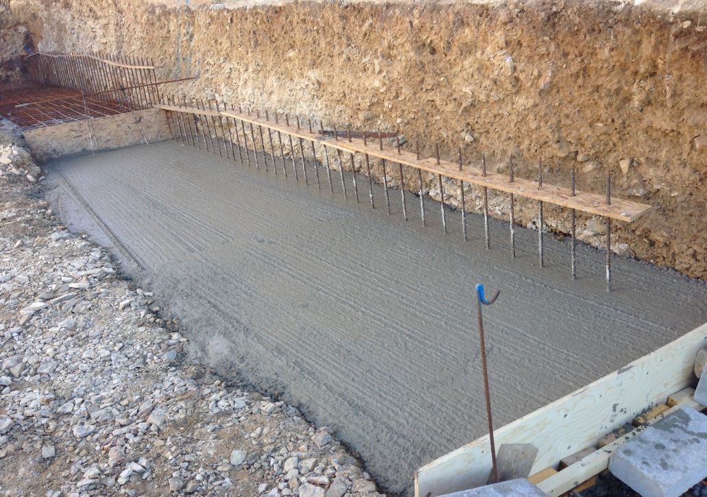 Filling the garage retaining walls with concrete: